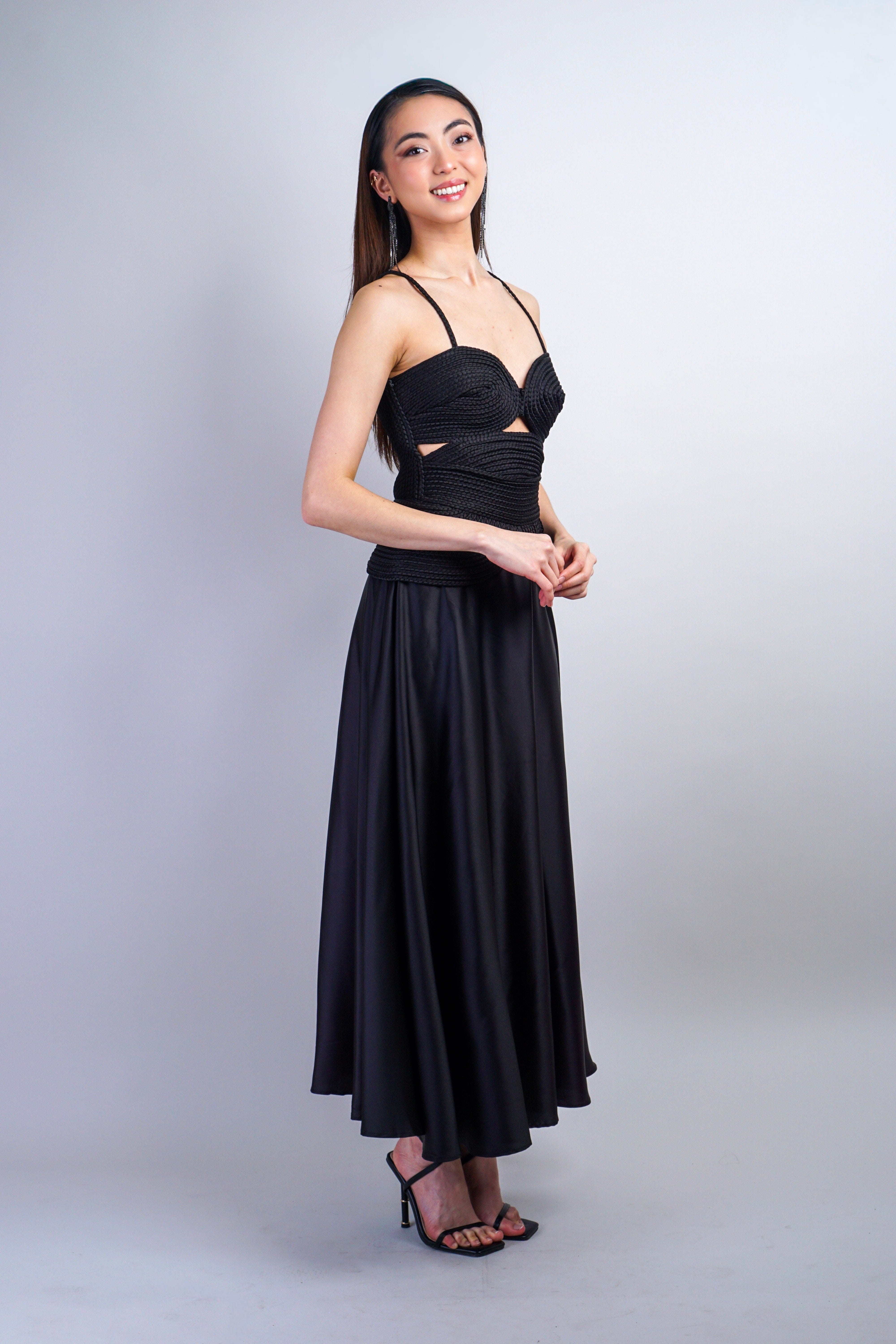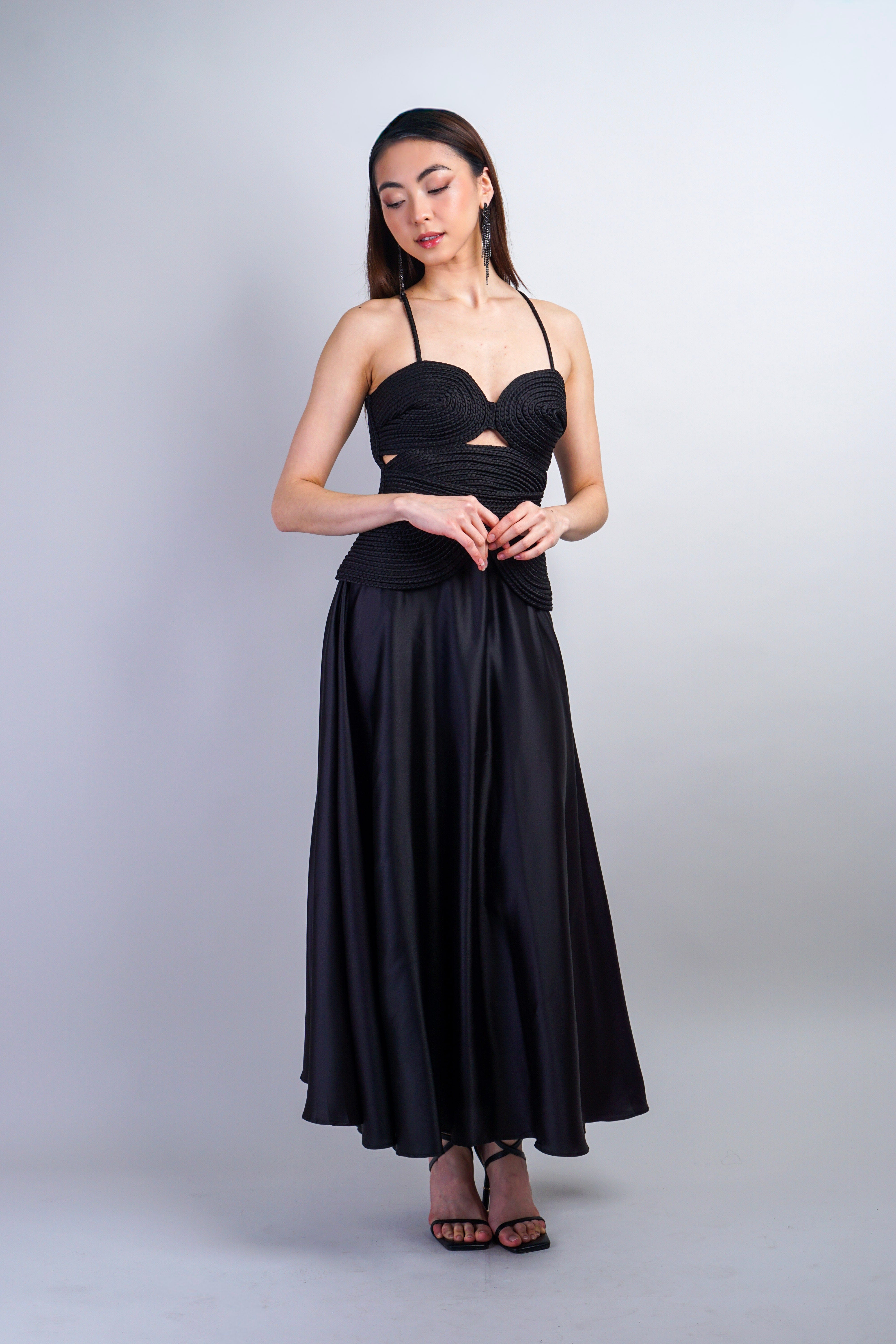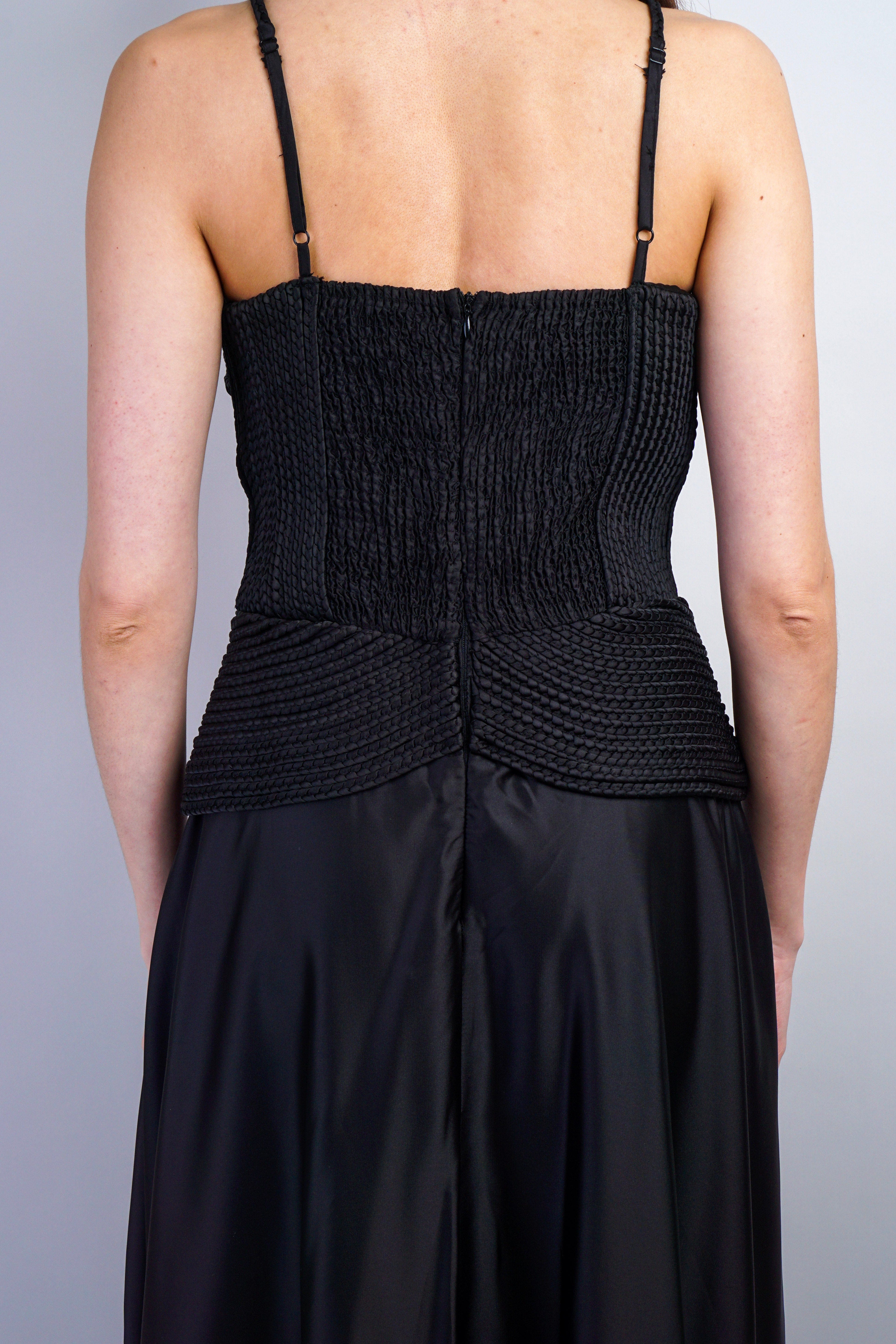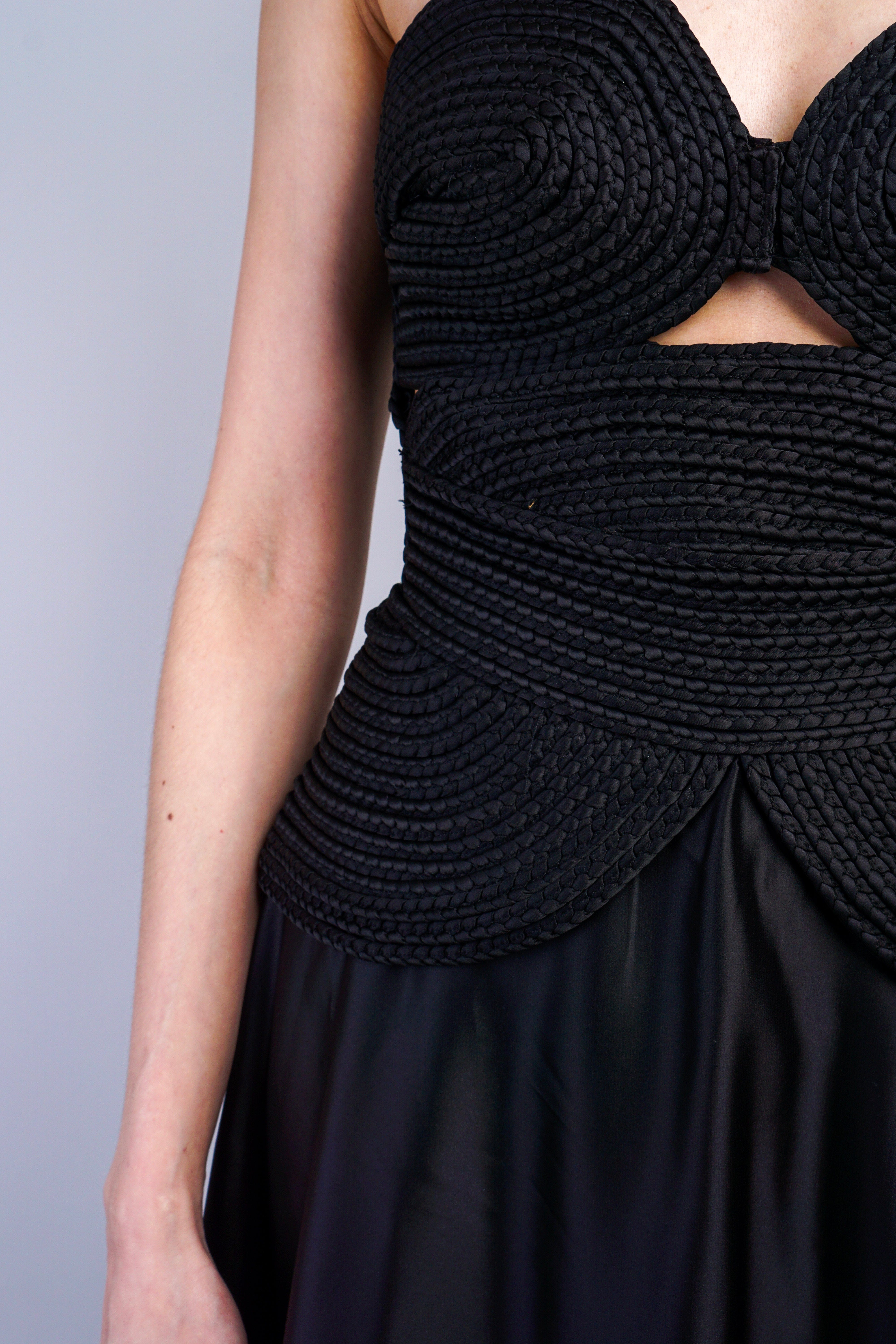 Black Braided Sweetheart Midi Dress
