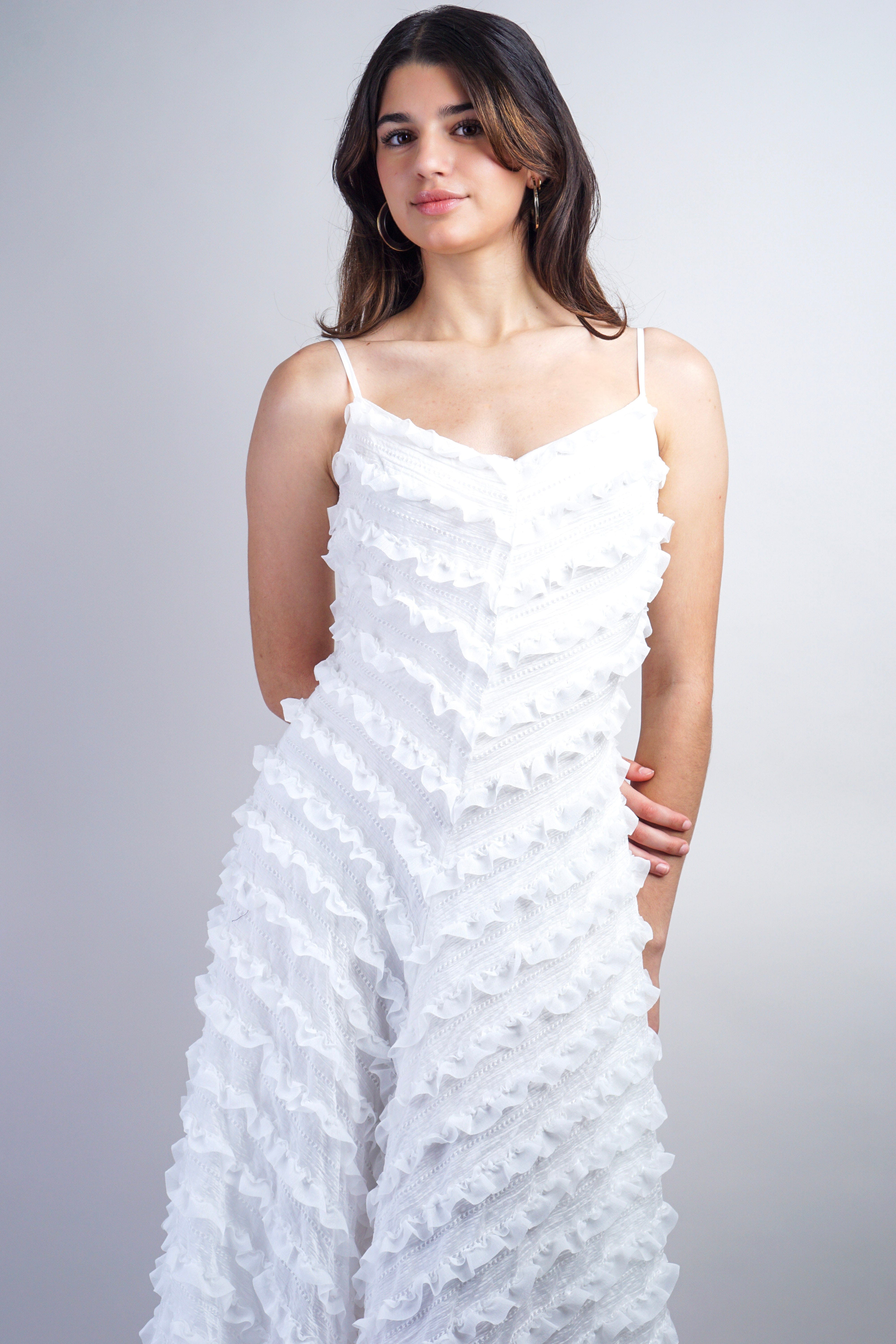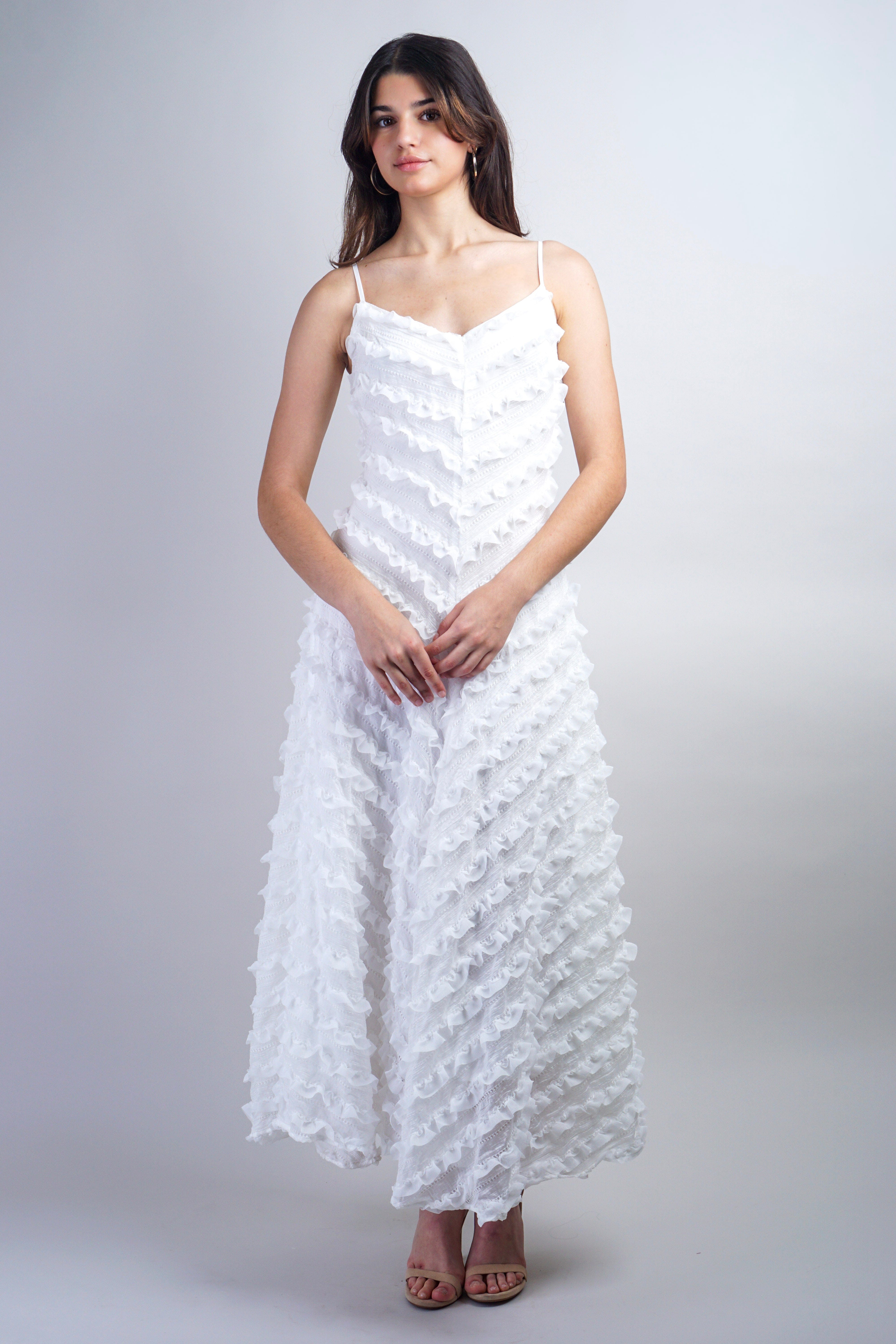 White Ruffle Sleeveless Maxi Dress