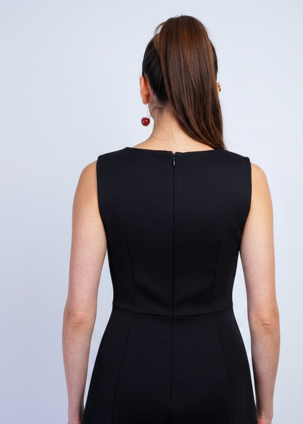 This elegant Black Crew Neck Dress is distinguished by a tasteful gold bow, seamlessly blending classic design with a modern flourish. The rich red fabric and refined neckline create a polished silhouette perfect for formal occasions. Designed to make a lasting impression, it offers both style and sophistication in one effortless piece.