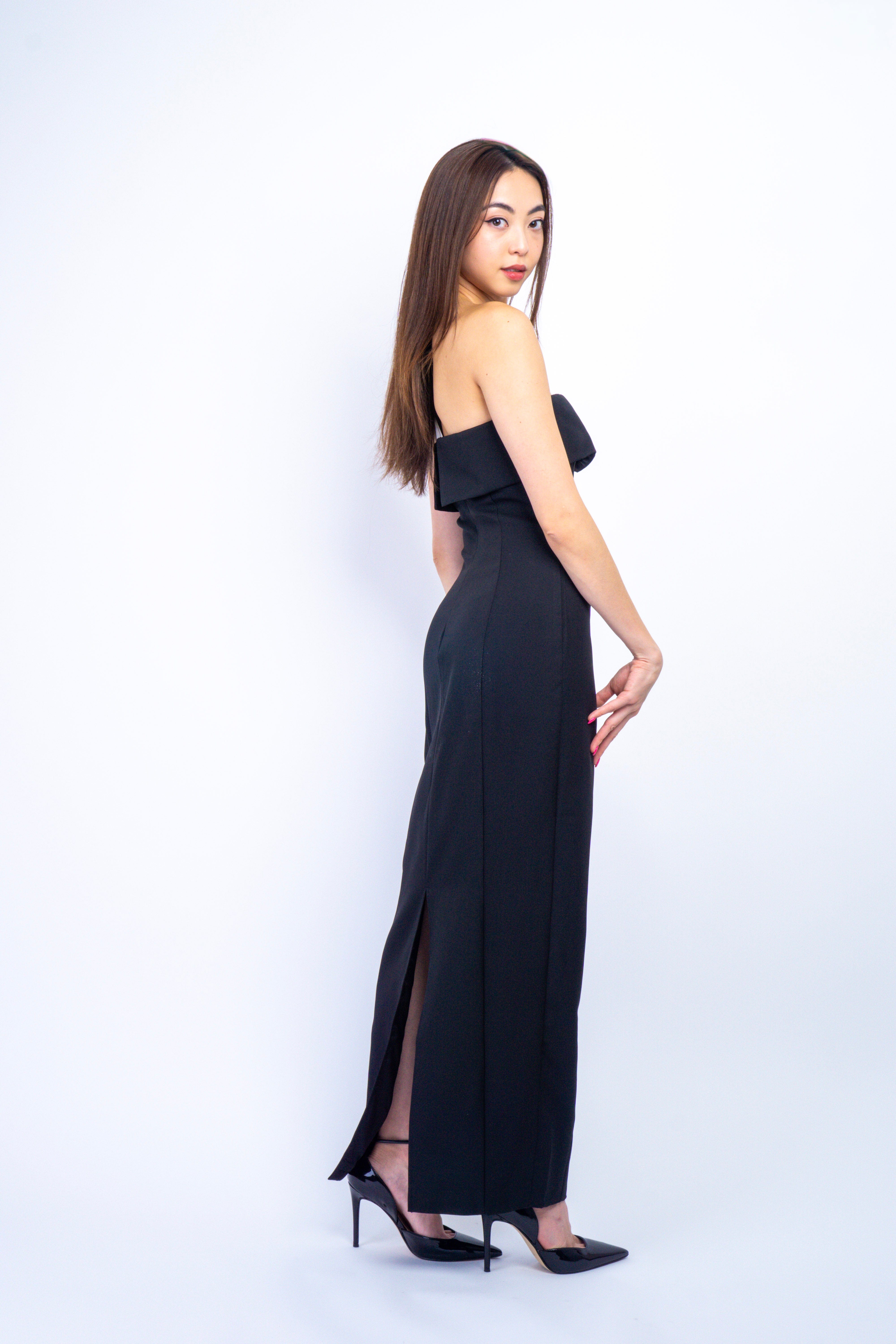 Make a striking statement with the Black Strapless Fold Over Band Pencil Maxi Dress. Designed to hug your curves flawlessly, its strapless neckline and elegant fold-over band highlight your shoulders and waist. The pencil maxi silhouette creates a sleek, elongated look ideal for upscale events or glamorous nights out. This dress ensures you exude confidence and timeless sophistication wherever you go.