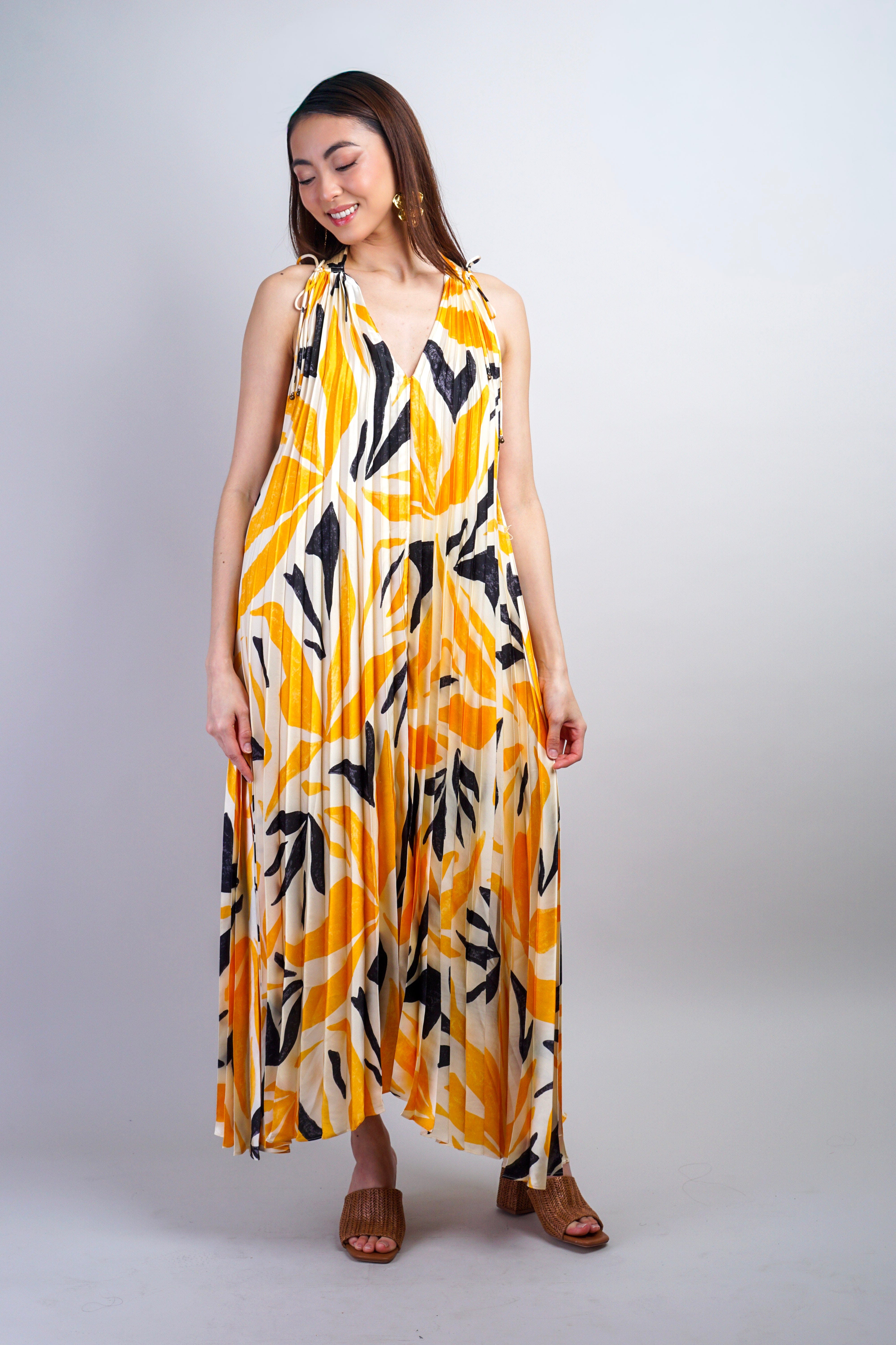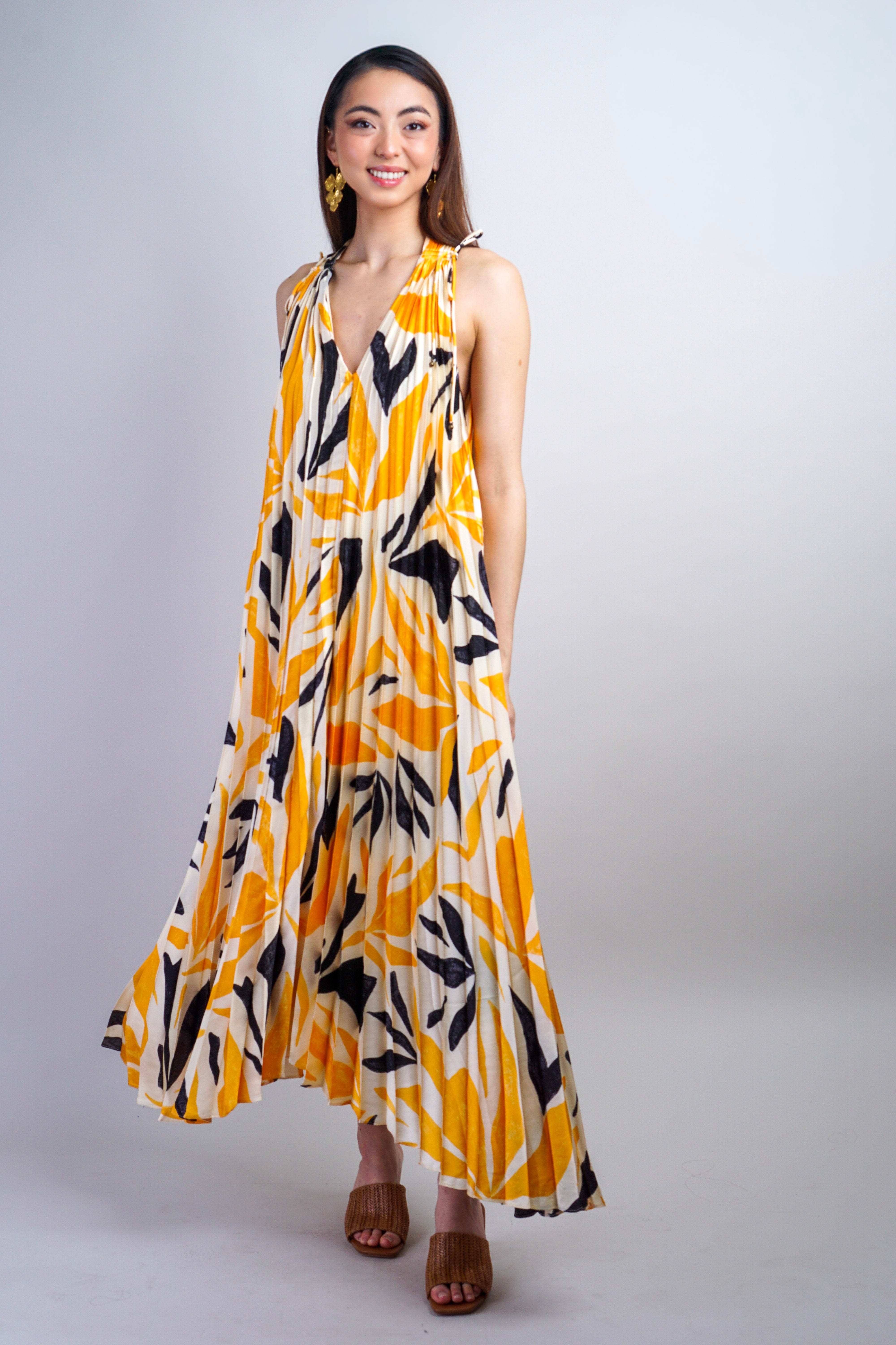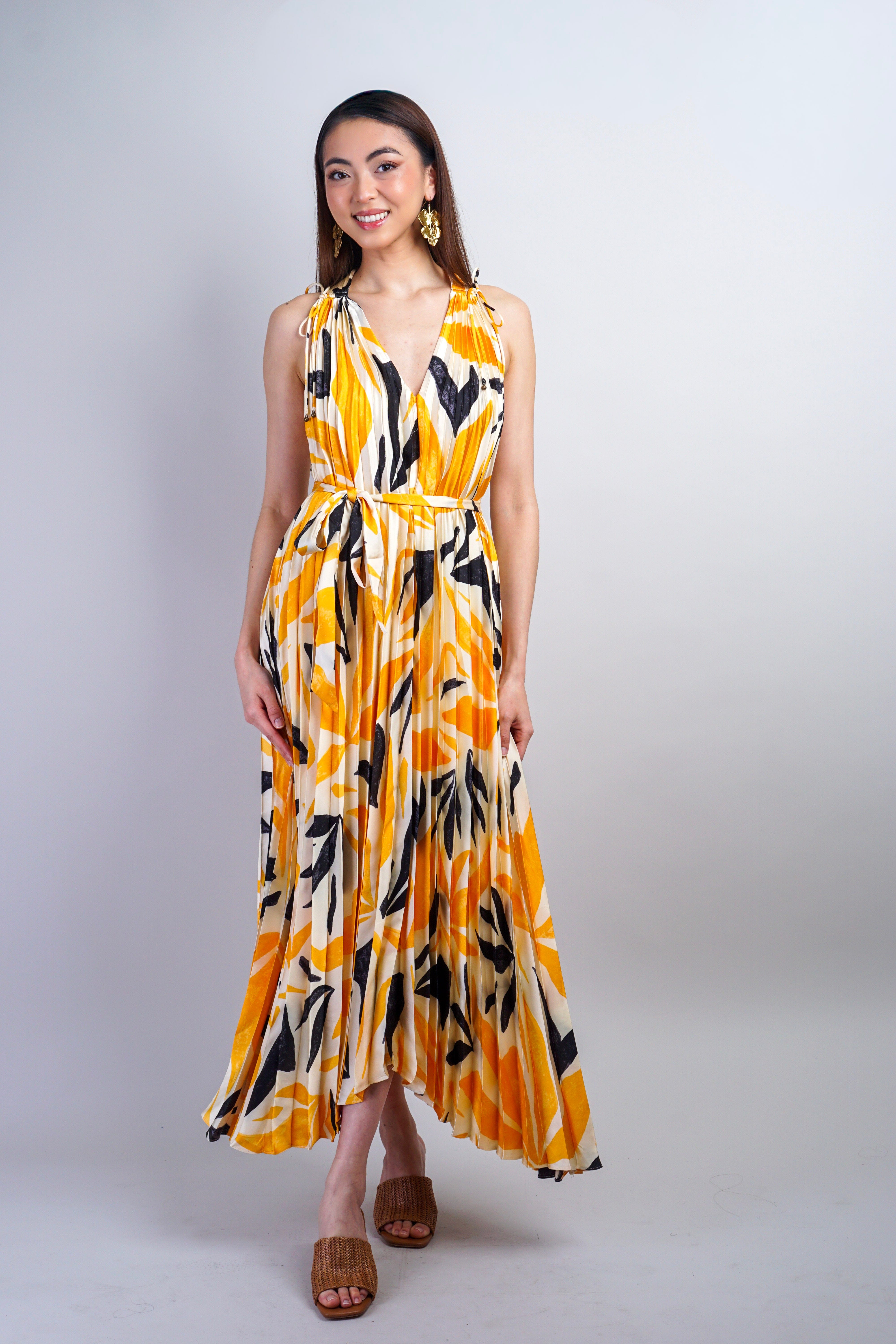Elevate your evening wardrobe with this sophisticated Mango & Black Pleated Maxi Dress. The striking color-block design pairs warm mango tones with classic black for a modern, editorial aesthetic. Precision pleating creates graceful movement and dimension, while the maxi silhouette offers timeless elegance for special occasions, galas, or upscale events. Fully lined for comfort and a polished finish, this piece combines sophistication with wearability. A versatile statement dress that transitions seamlessly from day to evening.
